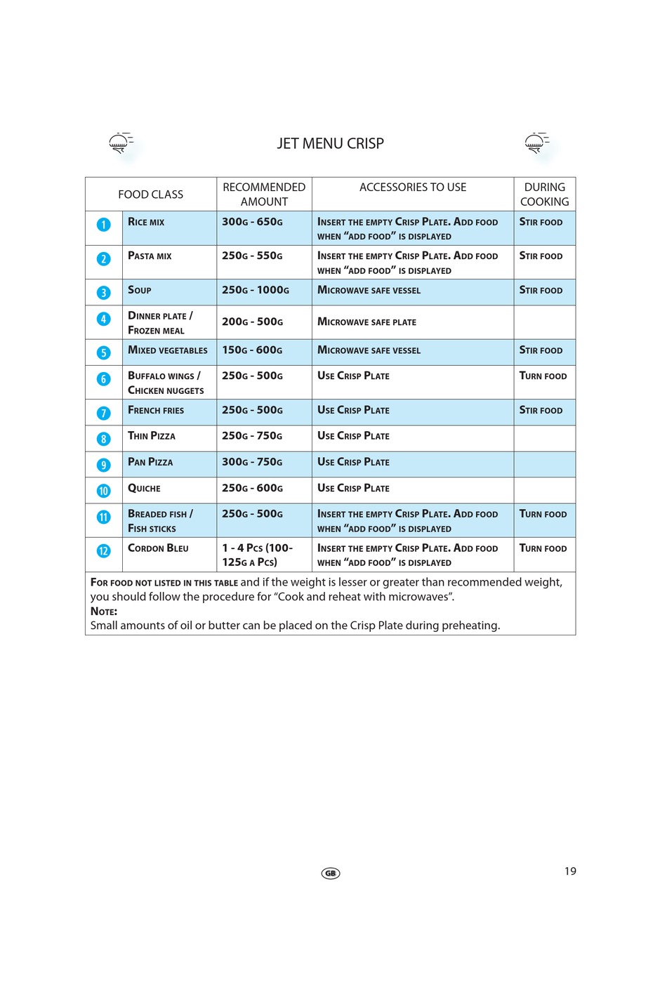 Small amounts of oil or butter can be placed on the Crisp Plate during preheating.