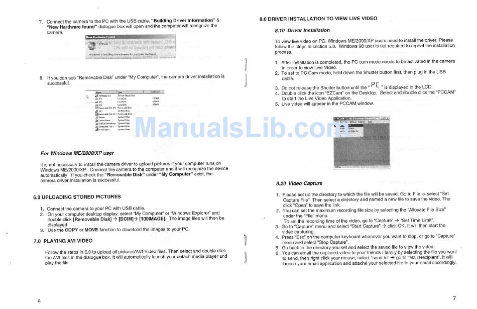 6.0 Uploading Stored Pictures; 7.0 Playing Avi Video; 8.0 Driver Installation To View Live Video; 8.10 Driver Installation - Philips Mic4014Sb/27 User Manual