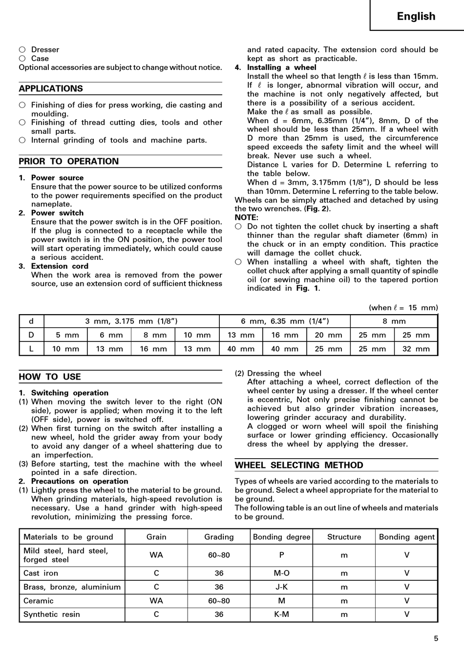 be ground. Select a wheel appropriate for the material to