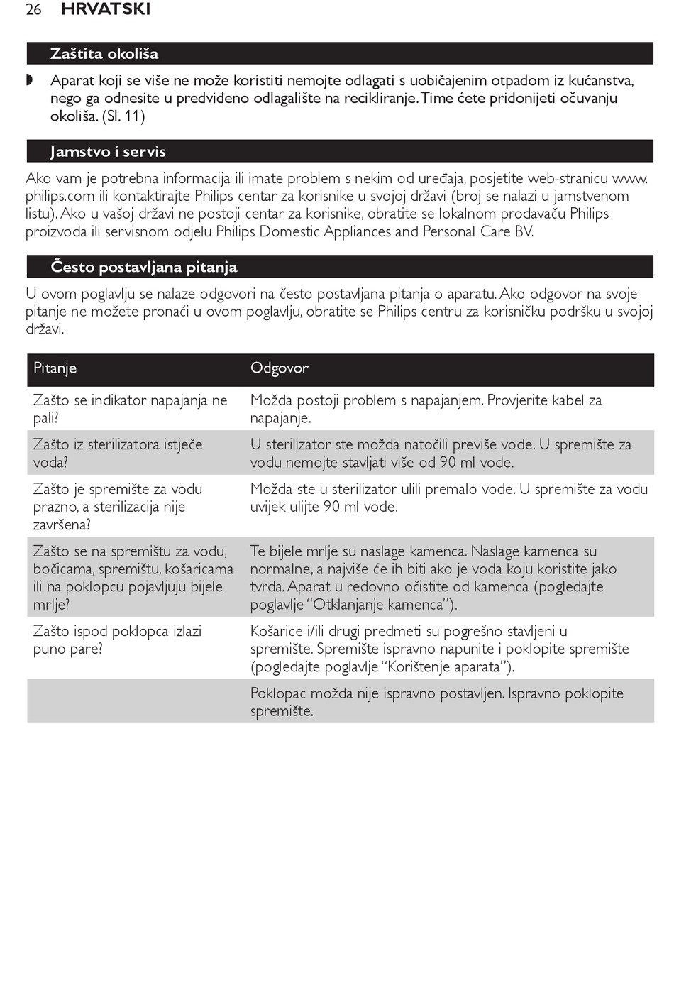 proizvoda ili servisnom odjelu Philips Domestic Appliances and Personal Care BV.