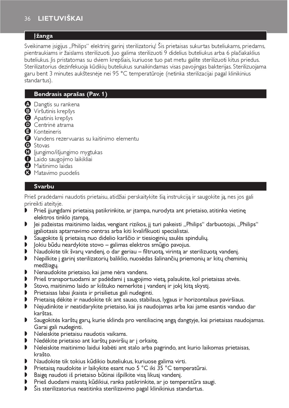 Sveikiname įsigijus „Philips" elektrinį garinį sterilizatorių! Šis prietaisas sukurtas buteliukams, priedams,