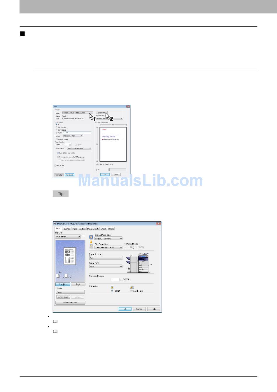 application that you are using. See your application's manual about displaying the printer properties dialog box.