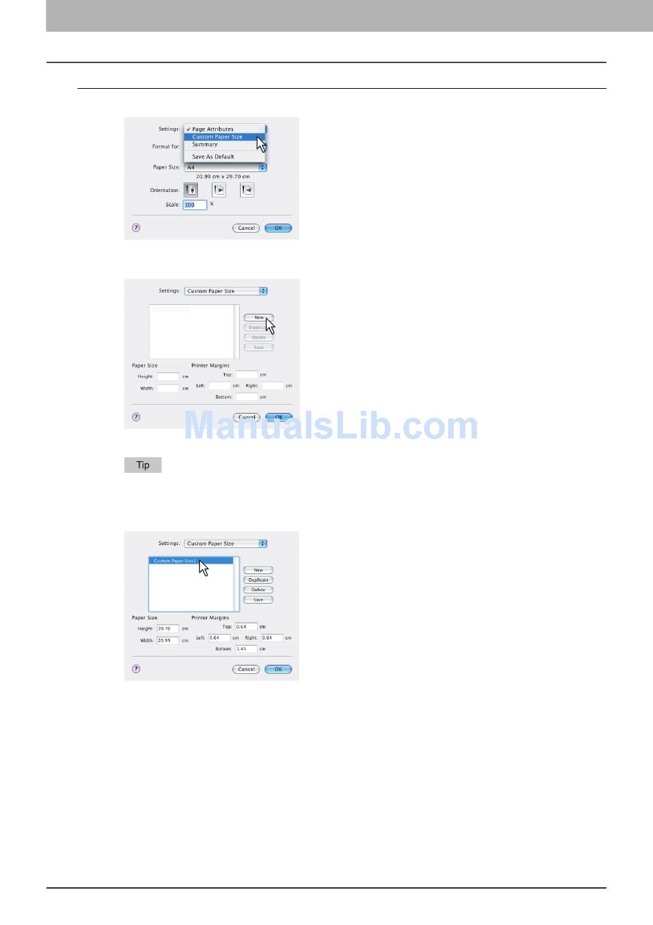 Creating Custom Page Size on Mac OS X 10.2.8 to Mac OS X 10.3.x