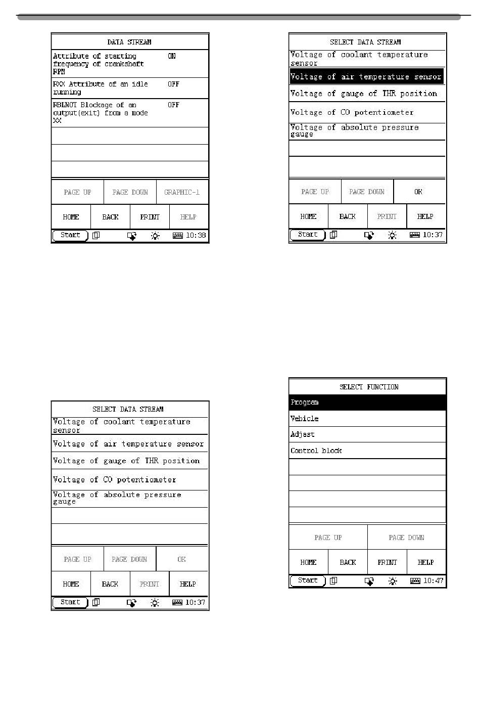 X-431 will display the data stream items as