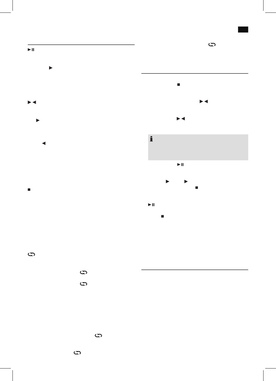 1 x presionar = La canción actual empieza de nuevo.