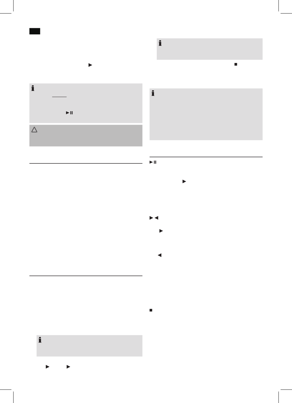 PLAY/PAUSE button (9) pressed to