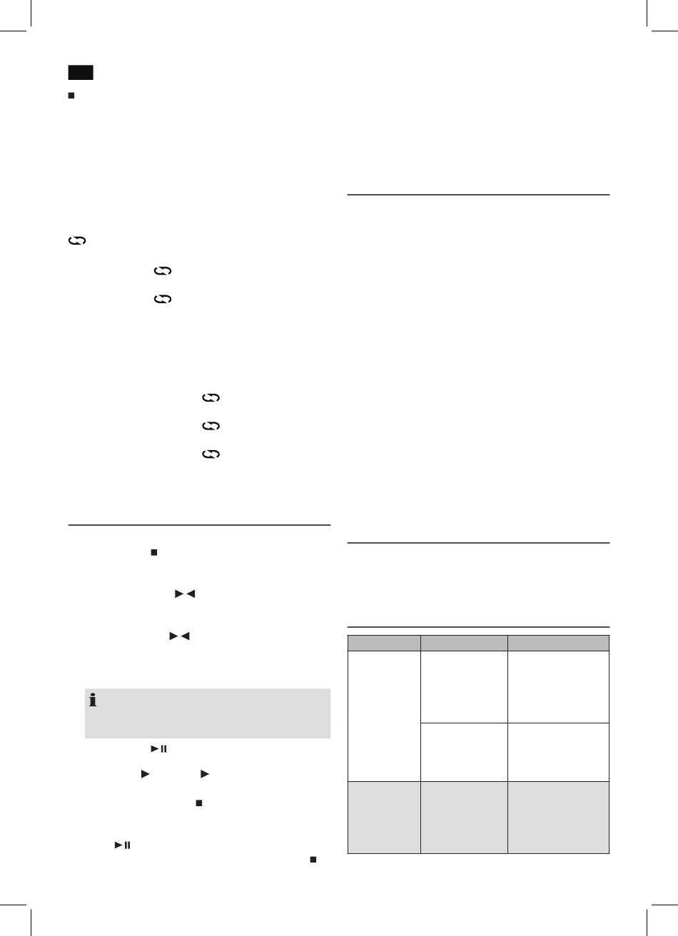 1 x megnyomva = állandóan ismétli az éppen futó számot