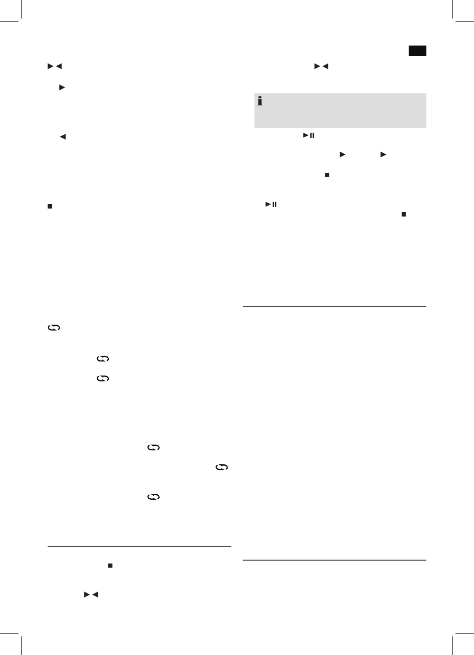 3x drücken = Die komplette CD wird ständig wiederholt (im