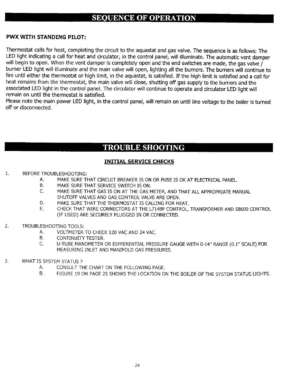 ON THE BOILER OF THE SYSTEM STATUS LIGHTS.