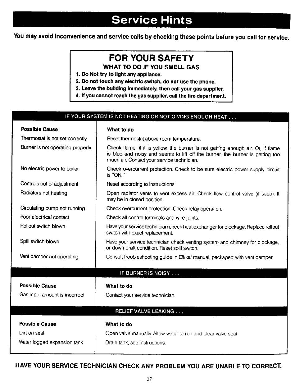 and service calls by checking these points before you call for service.
