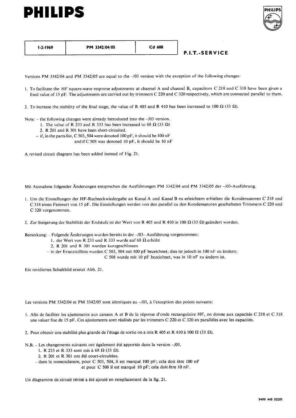 Versions PM 3342/04 and PM 3342/05 are equal to the —/03 version with the exception of the following changes: