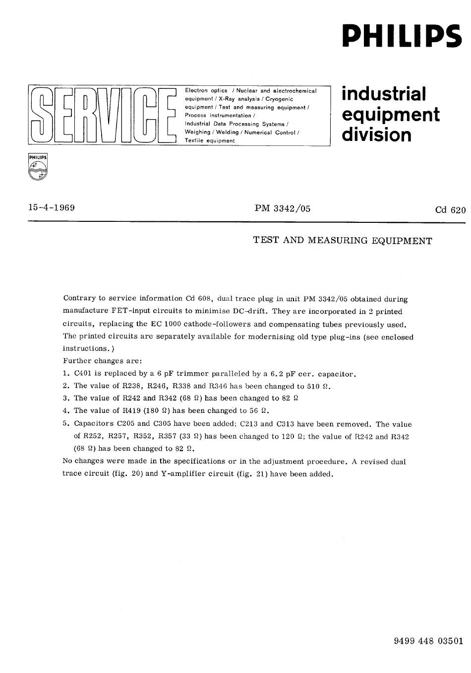 Contrary to service information Cd 608, dual trace plug in unit PM 3342/05 obtained during
