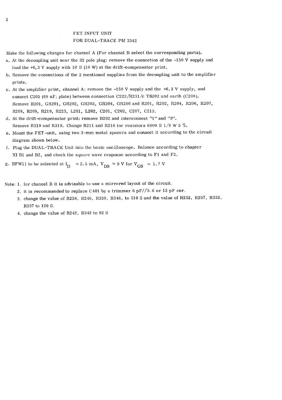 d. At the drift -compensator print: remove B202 and interconnect "1" and "9".