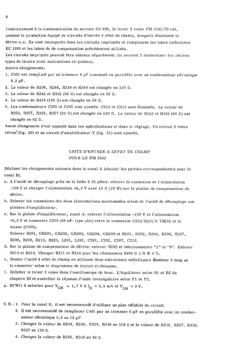 N.B. : 1. Pour le canal B, it est recommand~ d'utiliser un plan r~fl~chi du circuit.