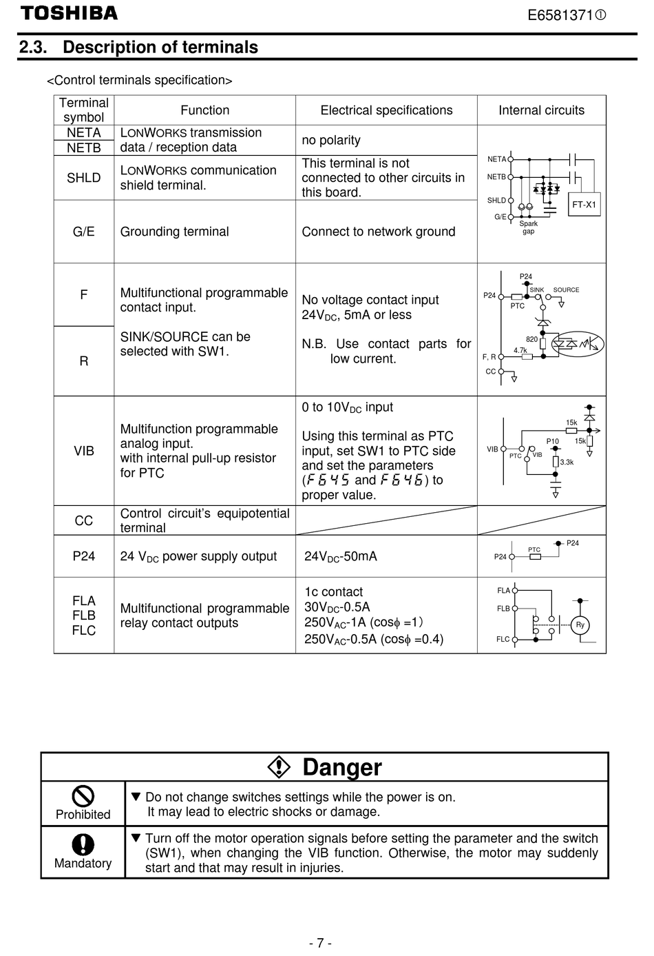 <Control terminals specification>