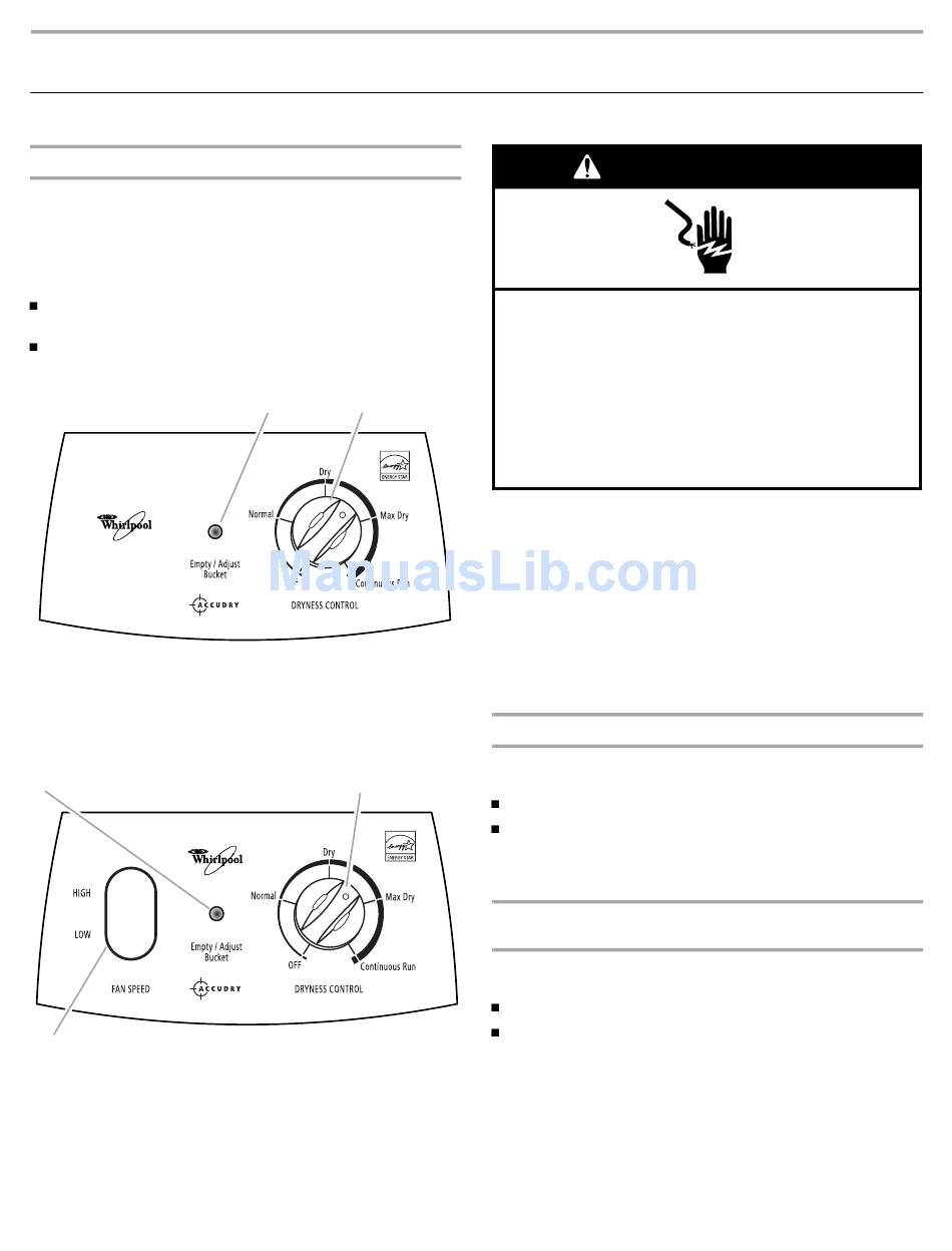 Ajuste el balde) se enciende, el deshumidificador no