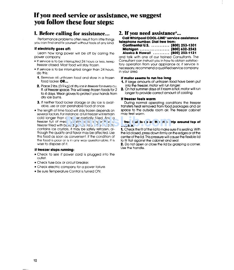 Call Whlrlpool COOL-LINE@ service assistance