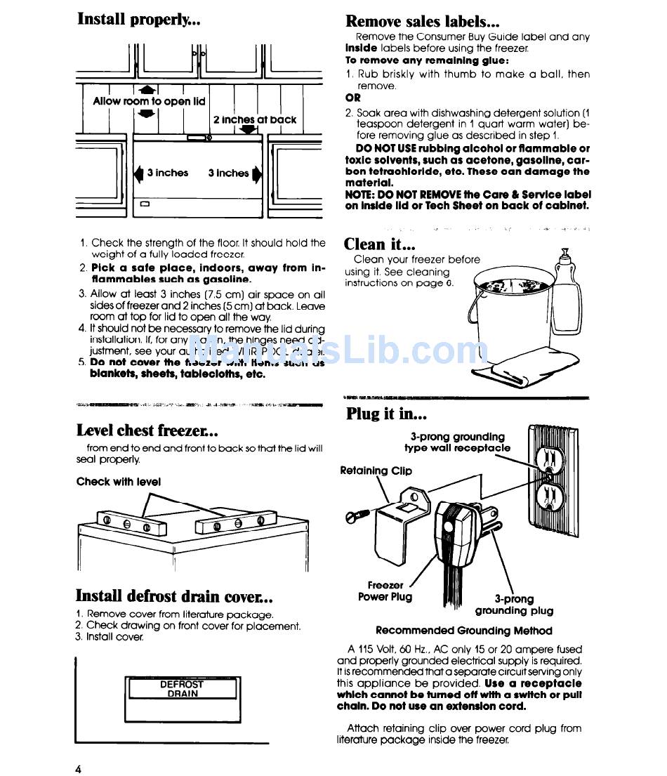 sides of freezer and 2 inches (5 cm] at back. Leave