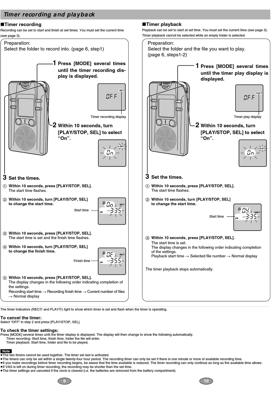 ≥The timers can only be set within a single twenty-four hour period. The recording timer can only be set if there is one minute or more of available recording time.