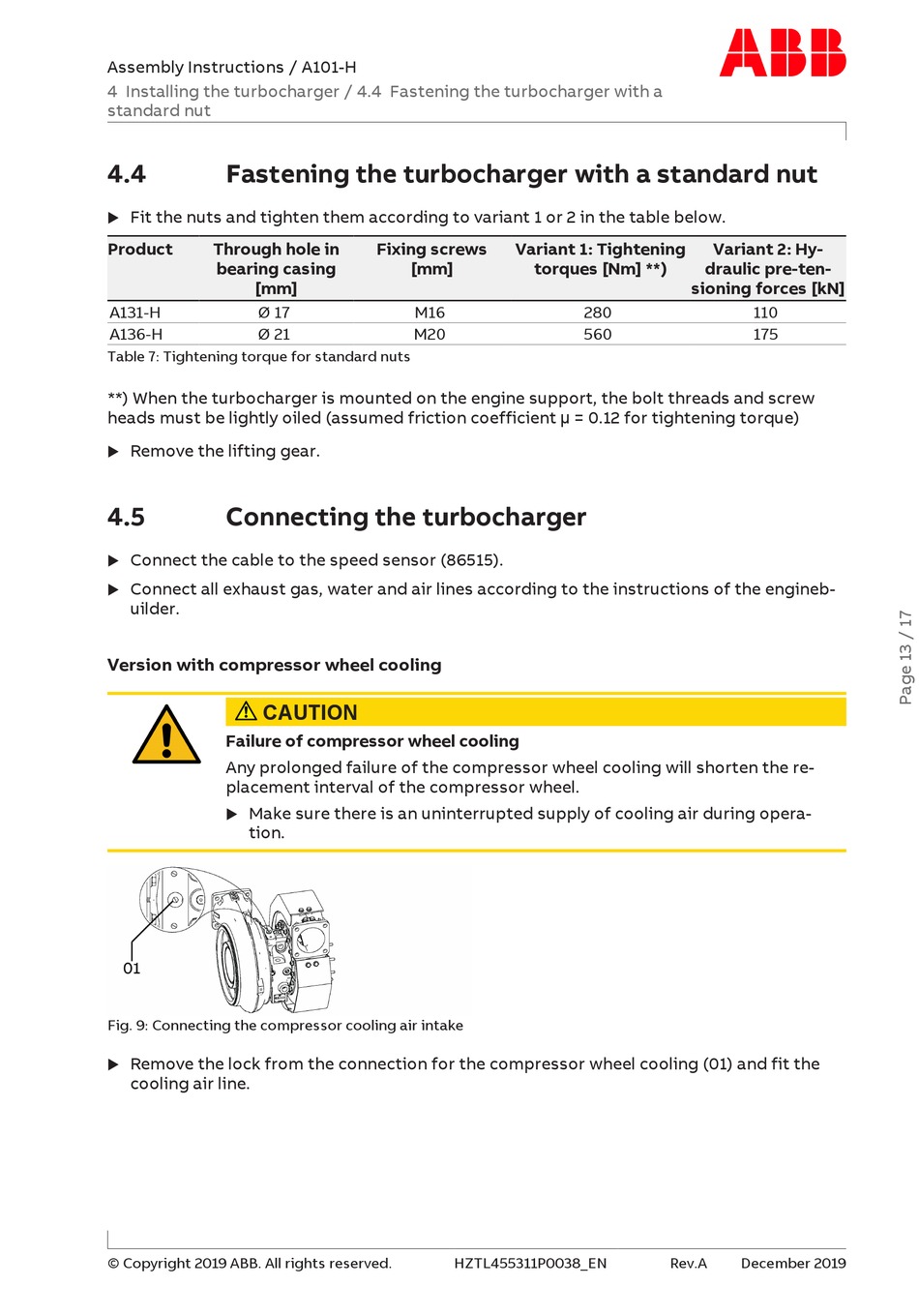 4 Installing the turbocharger / 4.4 Fastening the turbocharger with a