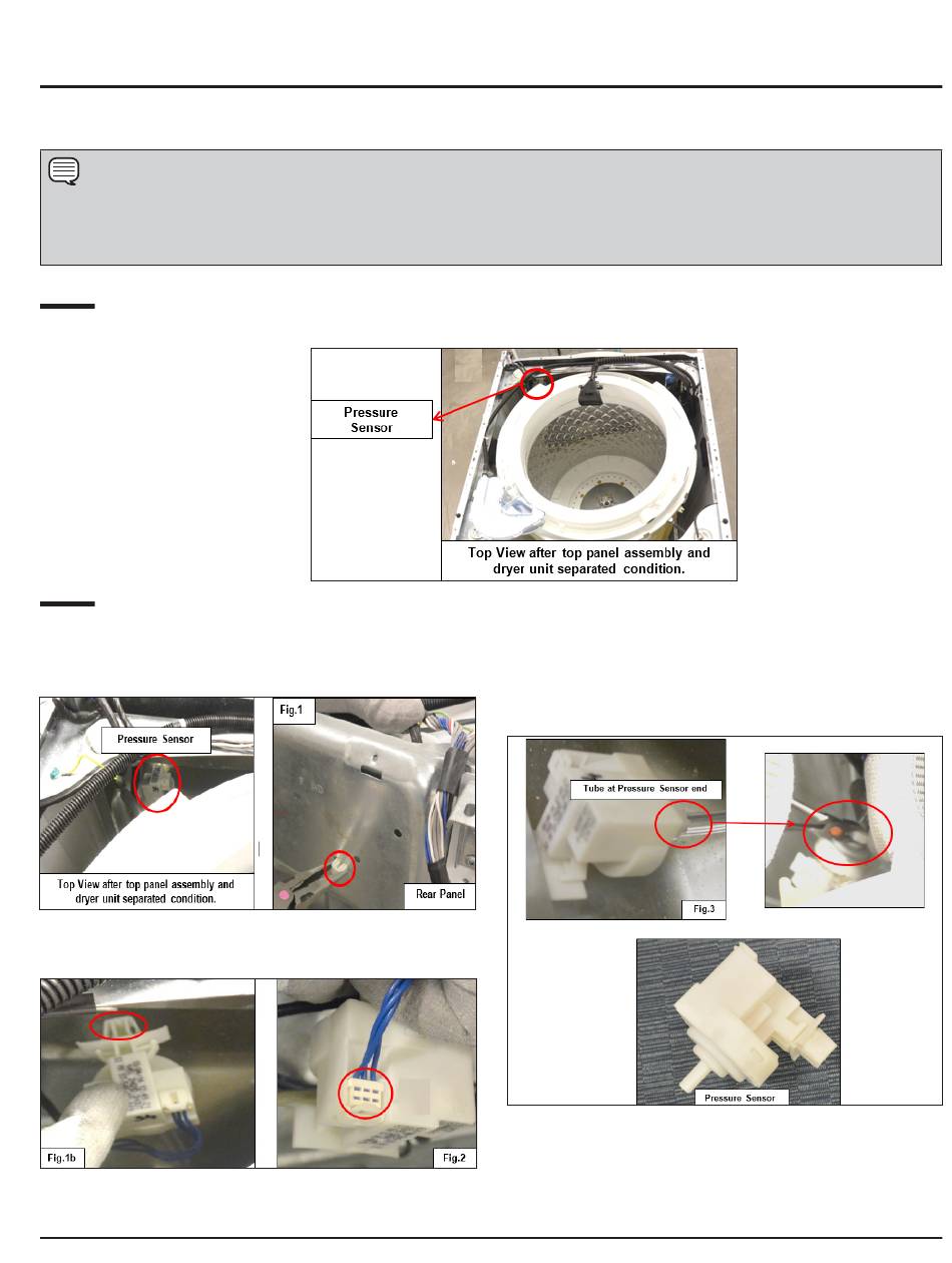 Detach the Pressure Sensor snap that fits with the Rear Panel of the washer unit (Figs. 1a and1b) and detach the connector