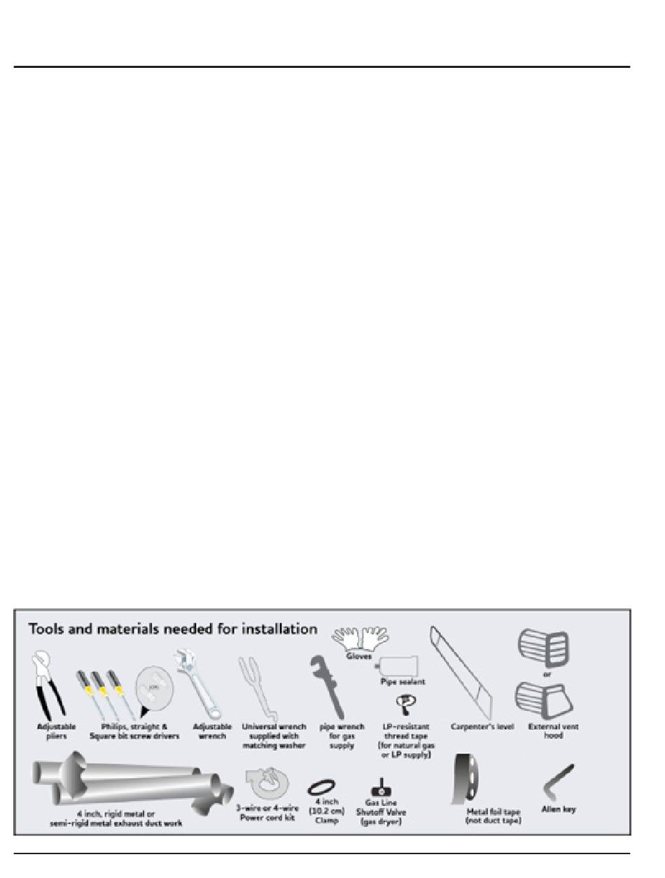 Perform clothes dryer installation and service by a qualified installer, service agency or the gas supplier.