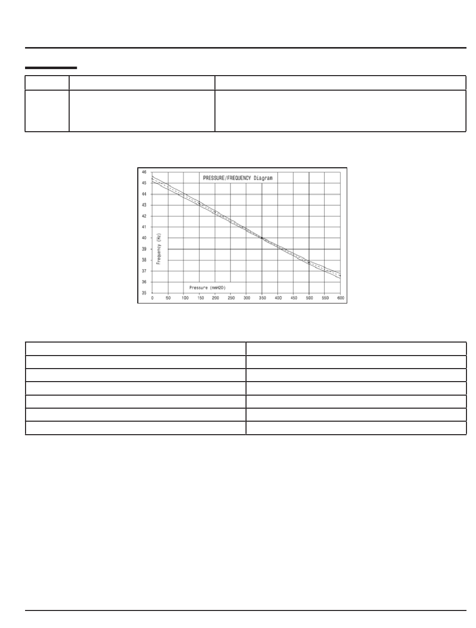 Mm H20* - Hz* : Points with 100% control of frequency output on assembly line