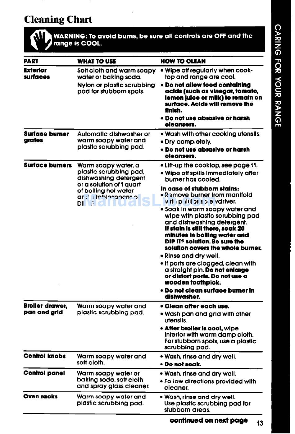 Do not clean surface burner In
