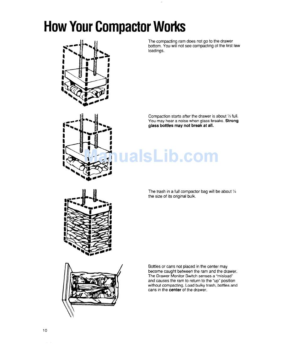 without compacting. Load bulky trash, bottles and