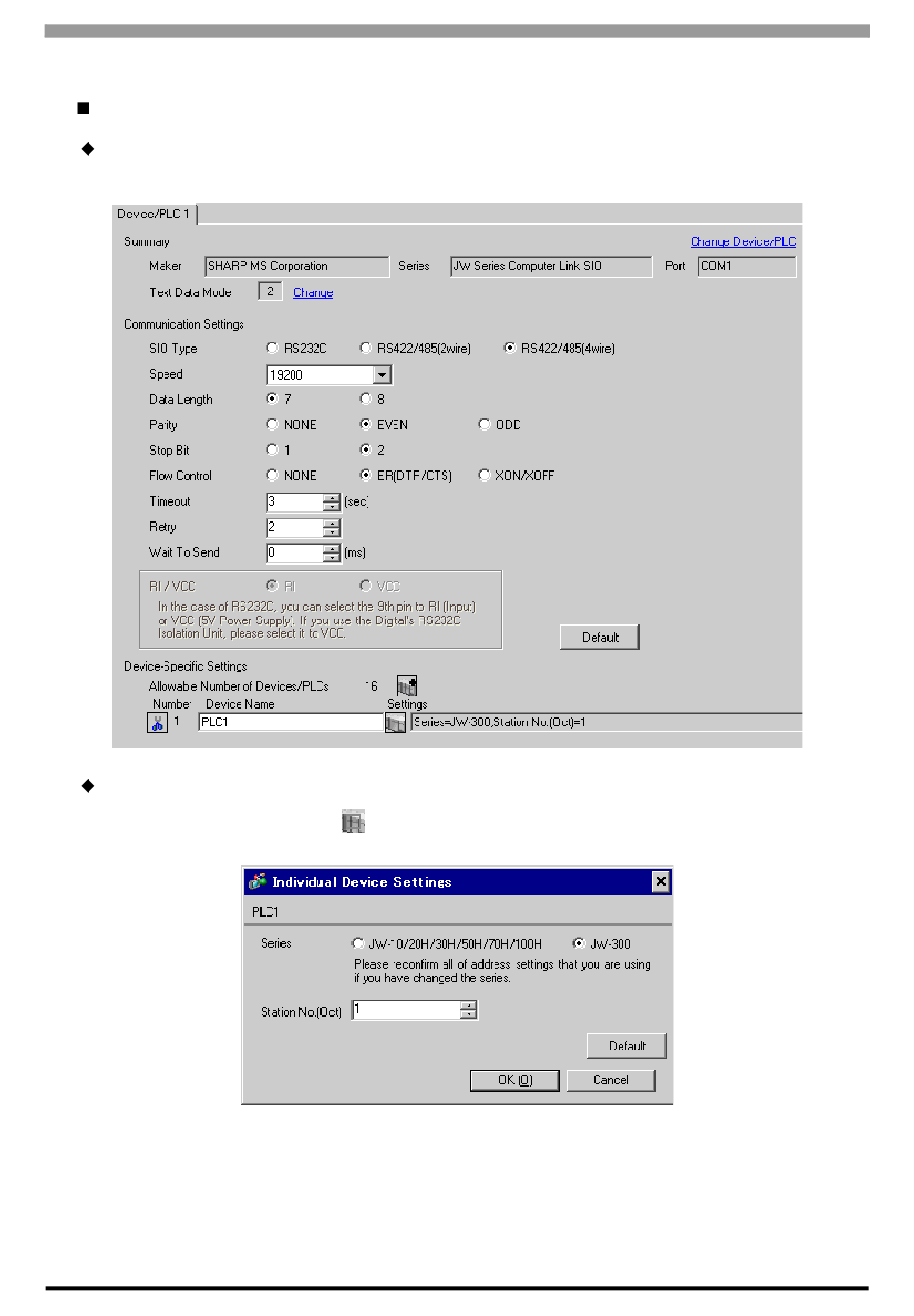 To display the setting screen, select [Device/PLC Settings ] from [System setting window] in workspace.