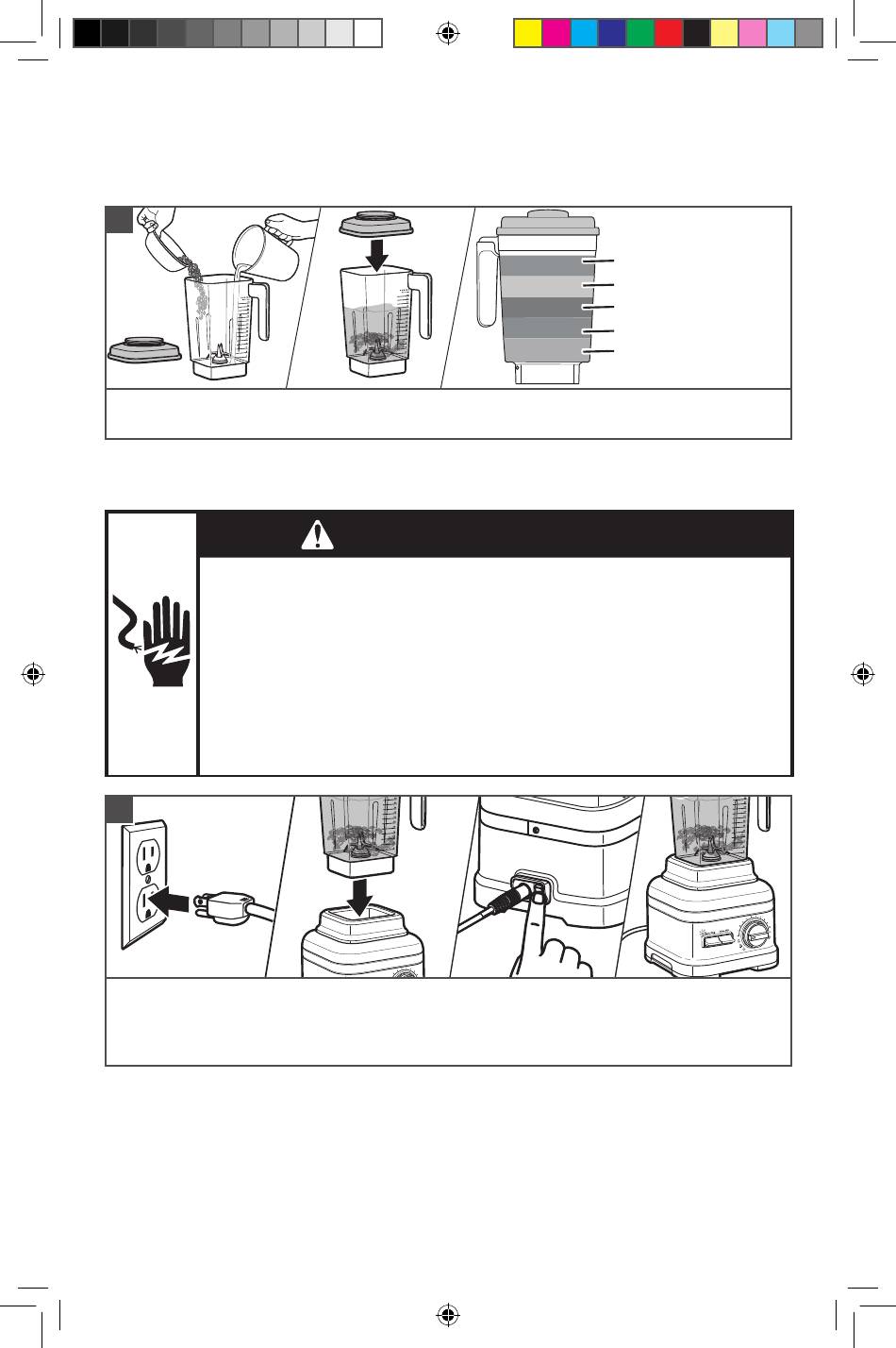 Introduire les articles à mélanger dans le récipient. Fixer le couvercle avec bouchon à