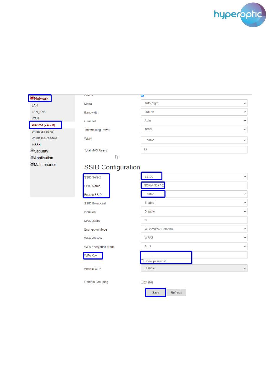 To create a new 2.4GHz SSID, log into your router (page 2) and go to Network > Wireless (2.4GHz). Select