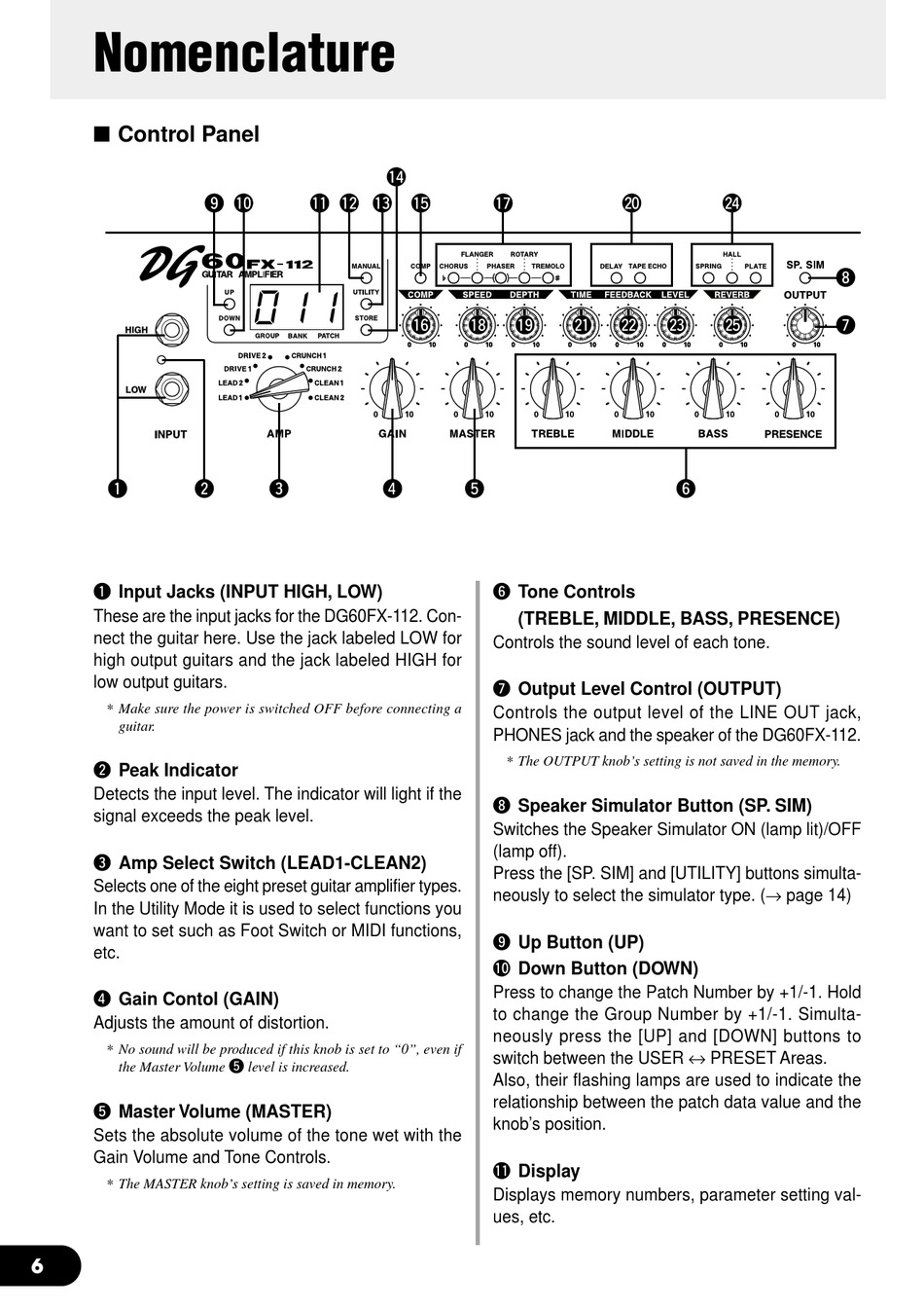PHONES jack and the speaker of the DG60FX-112.
