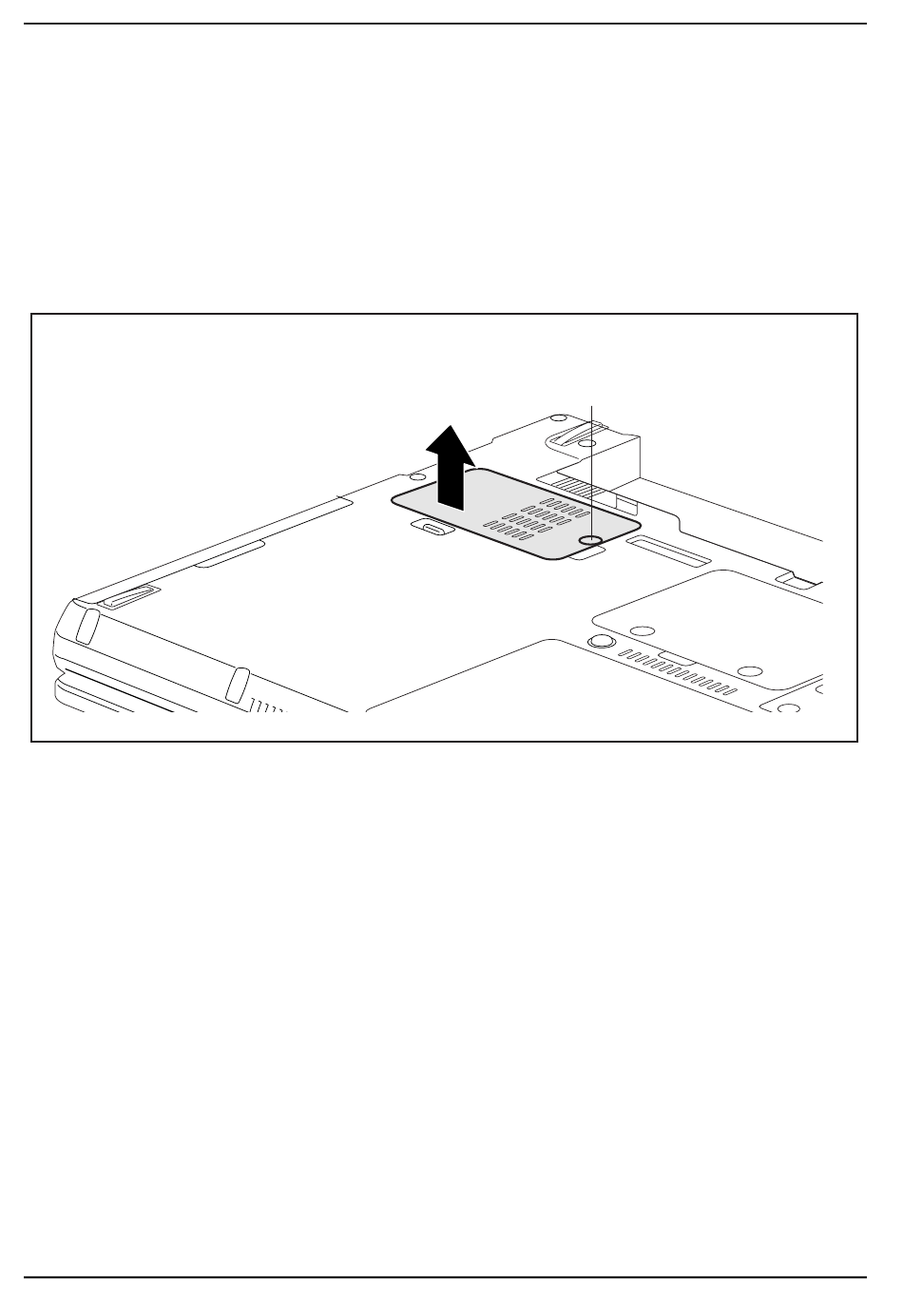Entfernen Sie die Schraube (1) und heben Sie die Abdeckung vom Notebook ab (2)
