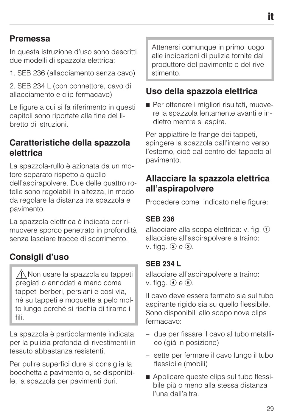 Non usare la spazzola su tappeti