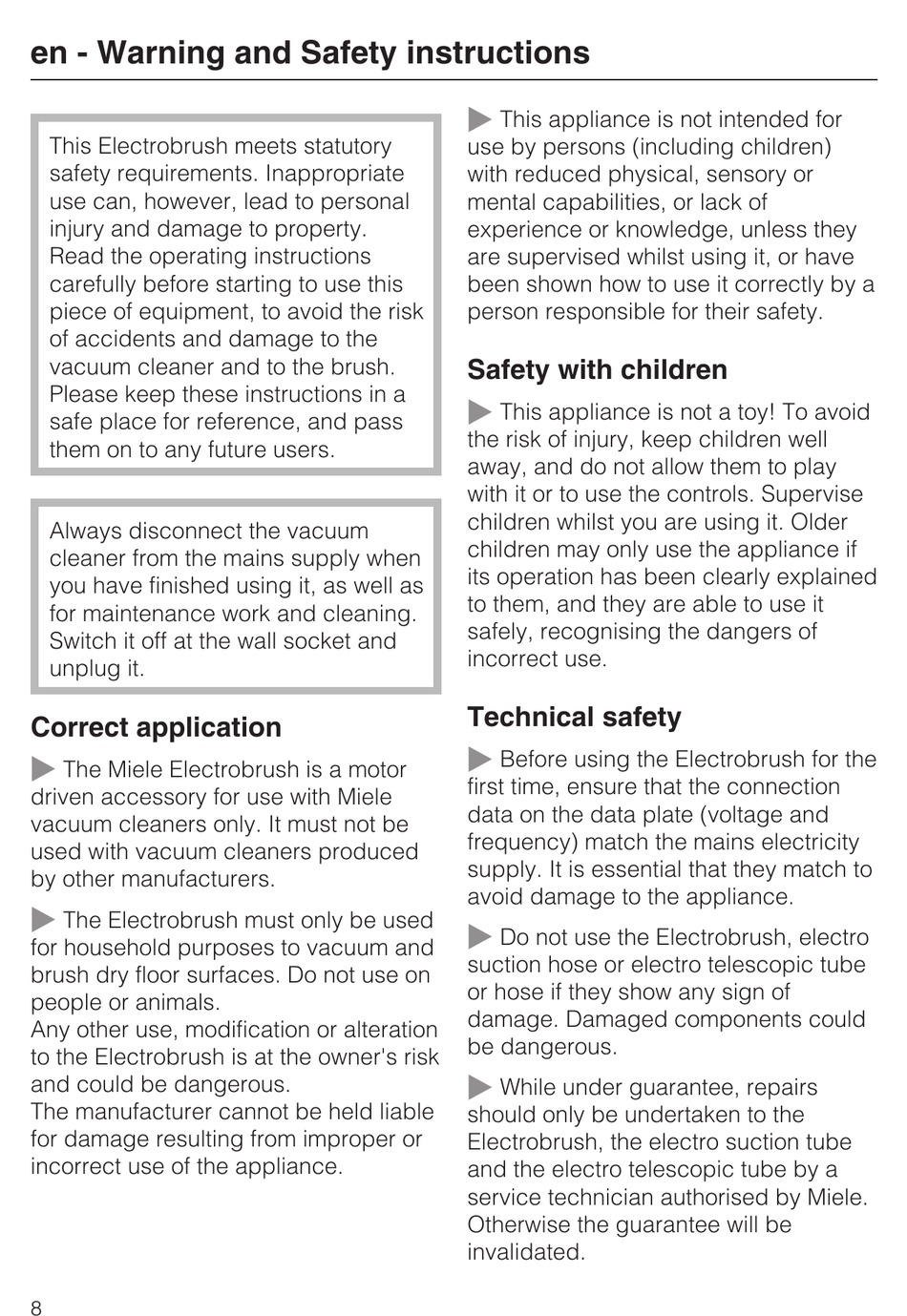 en - Warning and Safety instructions