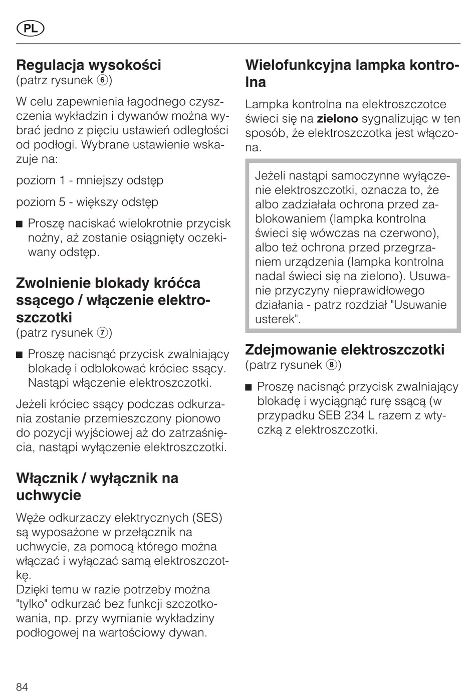 w³¹czaæ i wy³¹czaæ sam¹ elektroszczot-