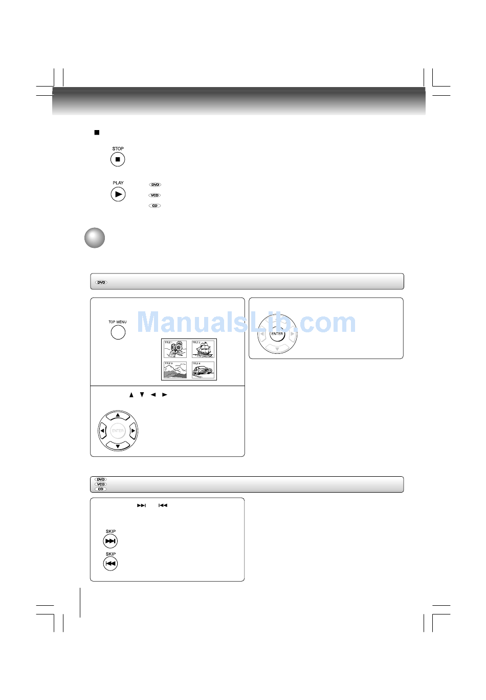 Normally, DVDs are divided into titles, and the titles are sub-divided into chapters. VIDEO CDs and audio CDs are divided into