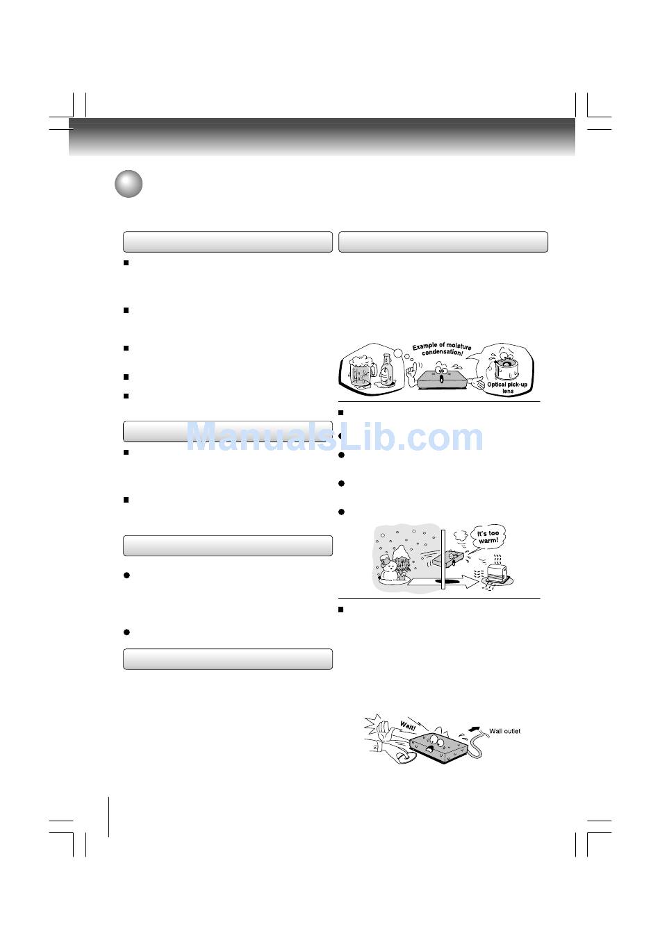 Do not use the DVD player when moisture condensation