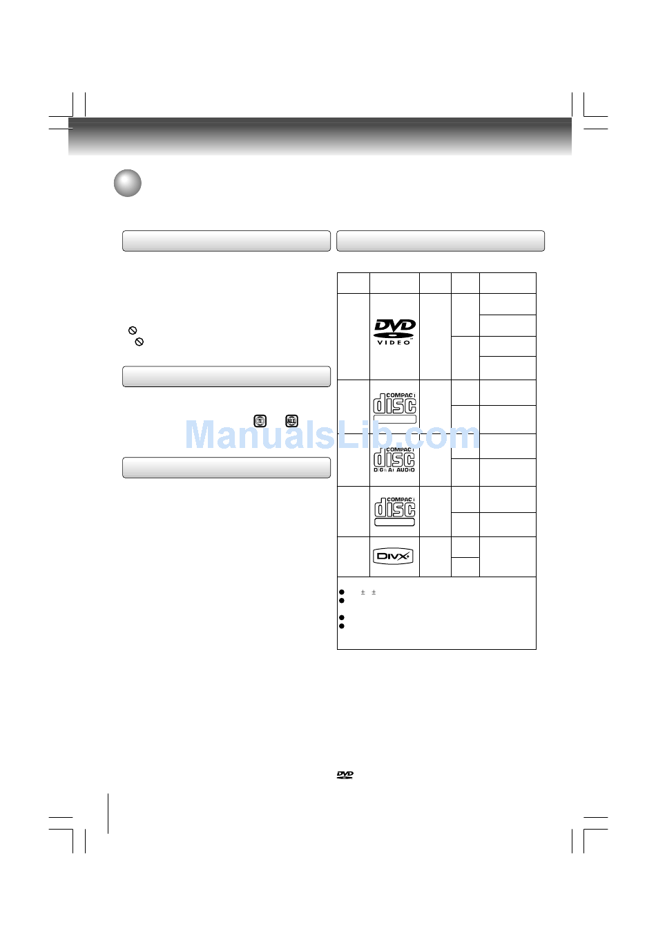 This DVD player can play the following discs.