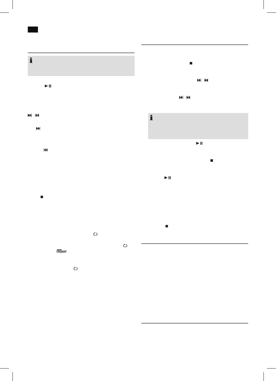 1 x presionar = La pista actual volverá a comenzar desde el