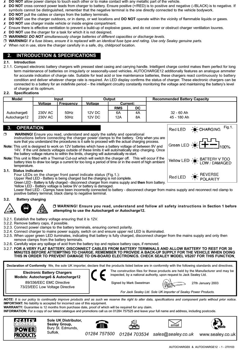 AUTOCHARGE6 & AUTOCHARGE12 - 1 - 270103