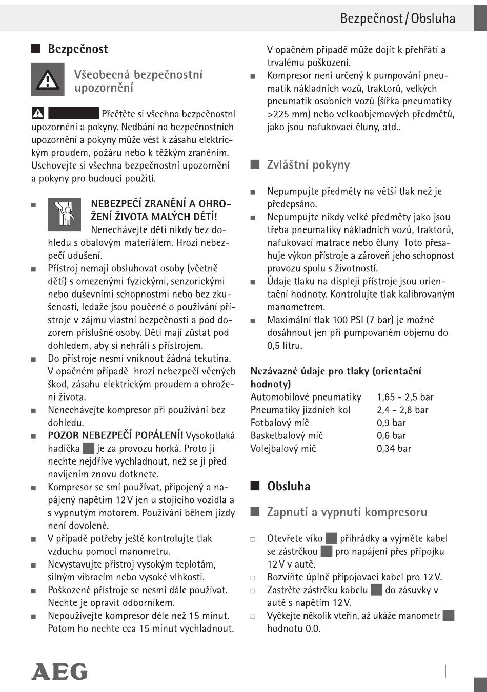 Compressor AEG KD 7.0 Operation And Safety Notes