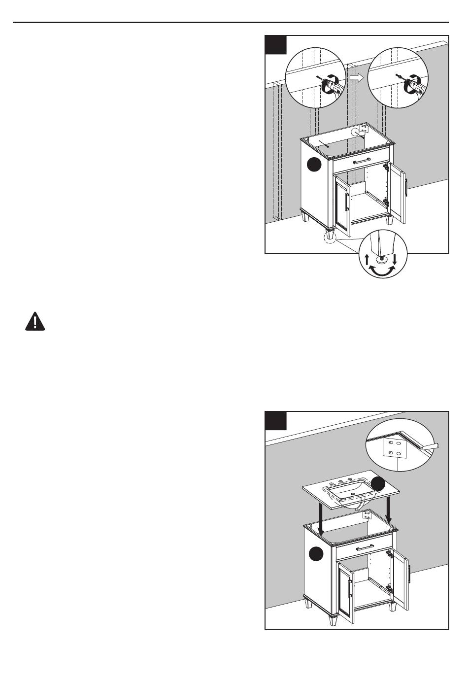 2. With two people, carefully place vanity (A)