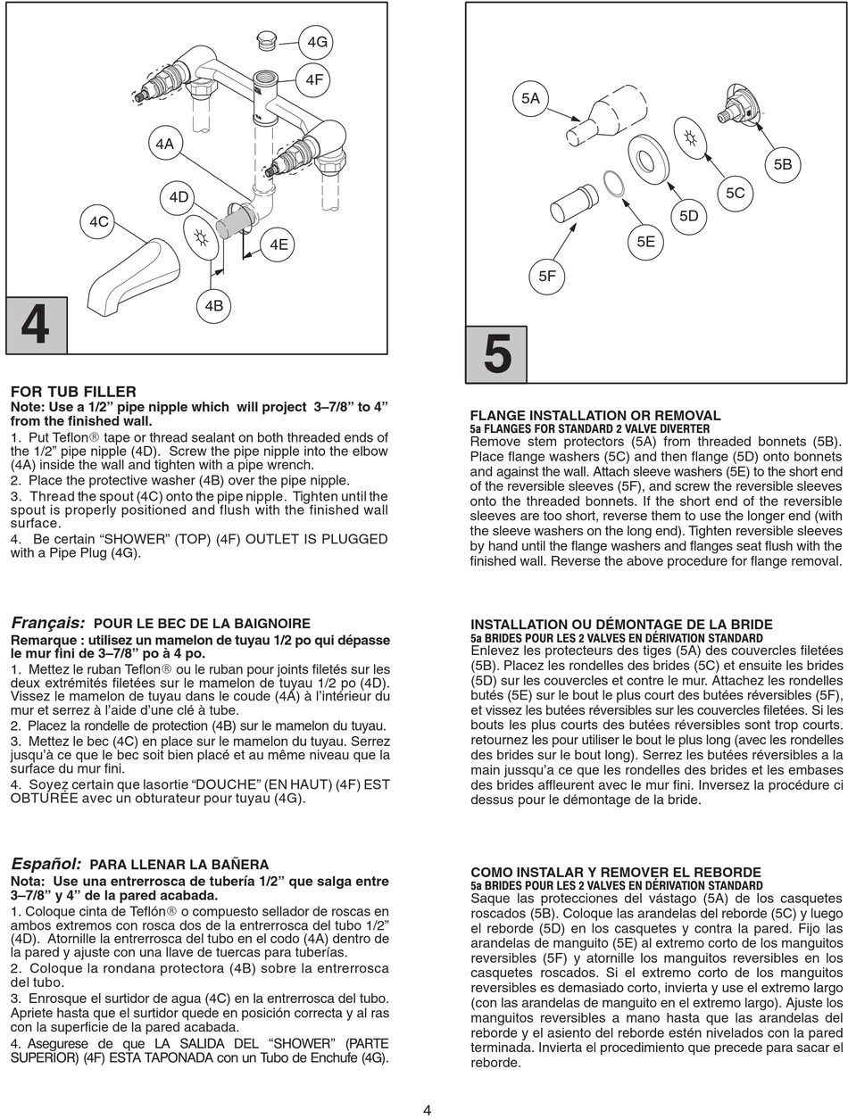 Flange Installation Or Removal; For Tub Filler - Black & Decker Price Pfister 805 Series Quick Start Manual