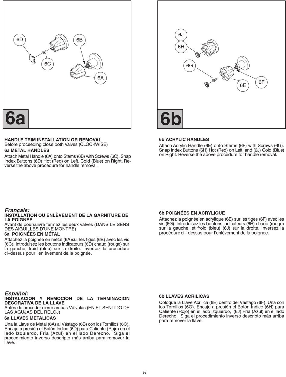 Caliente (Rojo) en el lado Izquierdo, (6J) Fría (Azul) en el lado