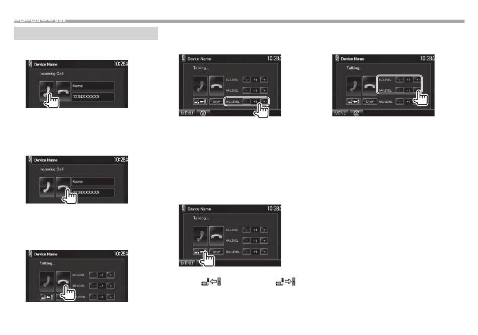 • Use the monitor panel to adjust the call/earpiece