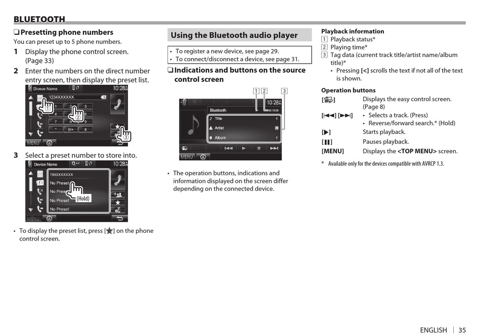 * Available only for the devices compatible with AVRCP 1.3.