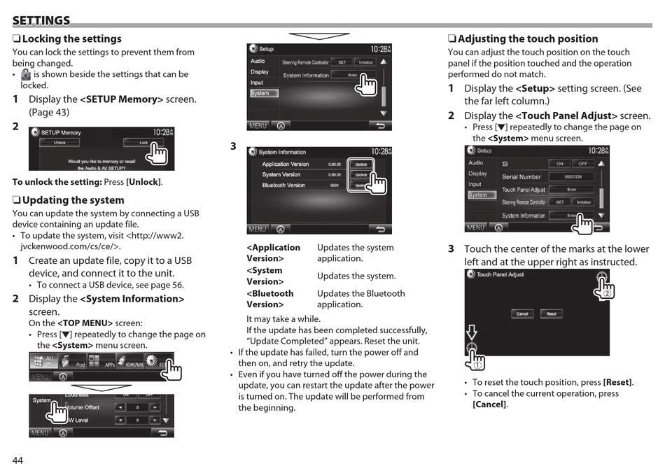 • To reset the touch position, press [Reset].