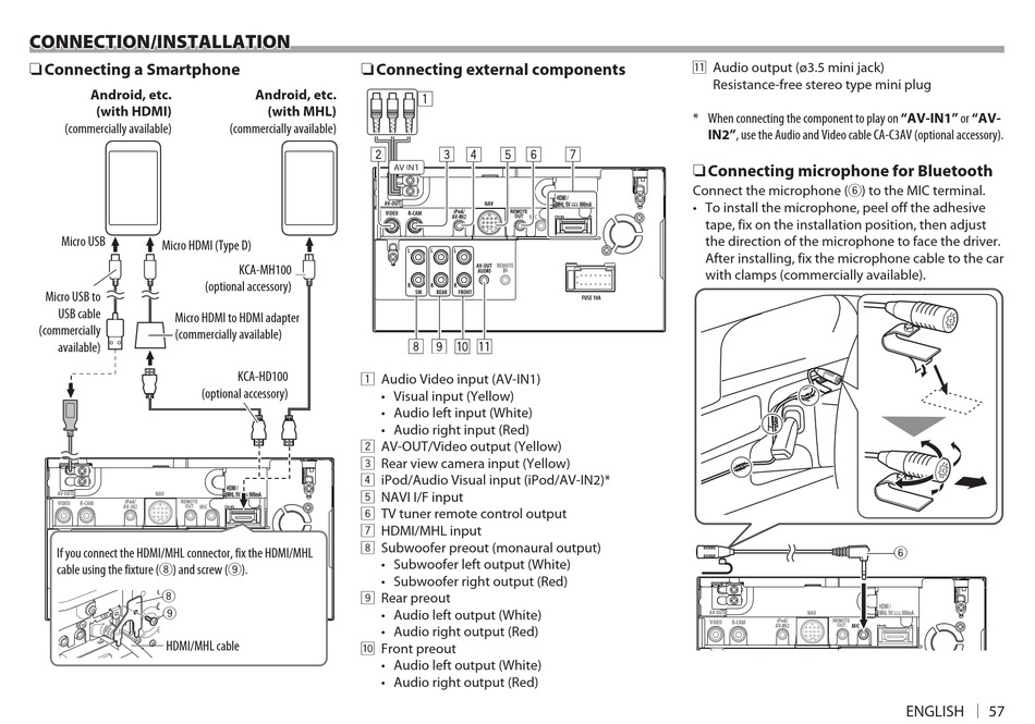 IN2", use the Audio and Video cable CA-C3AV (optional accessory).